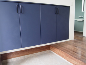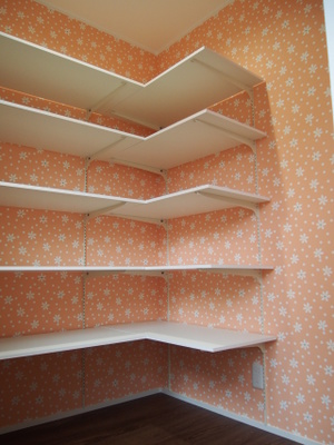 稼働棚で、高さ調節できます。ここに冷蔵庫も入れる予定。