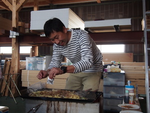 焼き担当の漁師のおじさん。ではなく毎度お馴染み、しのっちです。