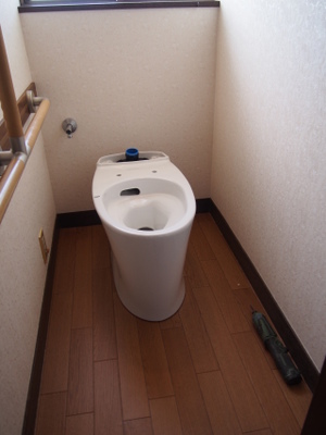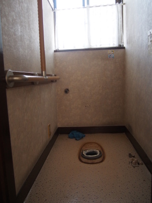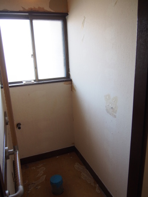 壁の補修をして新しいクロスとクッションフロアーを張っていきます。