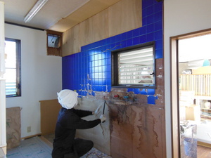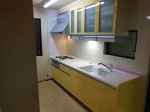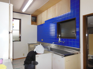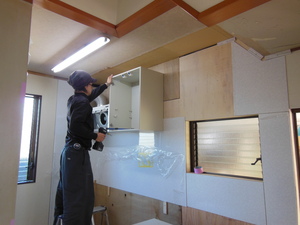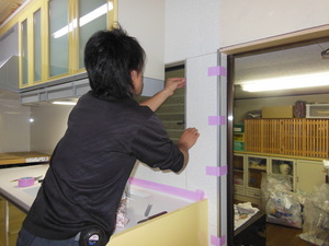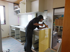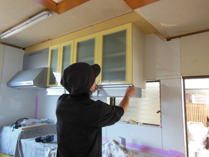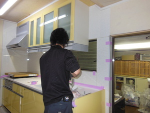 キッチンパネルを張って吊戸棚とりつけ~☆