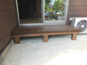 濡れ縁登場!全てダーク色に統一したので、ここに座ると
