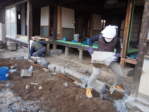 コンクリートを乾かしている間、材料の加工。