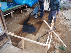 45cm程引っ込めた部分に基礎を新しく造ります。