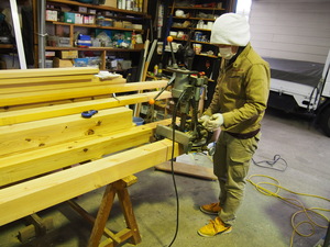 土台の穴ポコに柱をさしていきます。