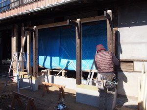 屋根が出来たらサッシを取付。