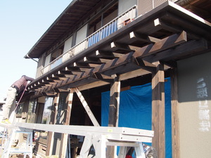 その上に、茅負(カヤオイ)、裏甲(ウラゴ)まわします。
