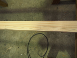 材料に斜めの線を書いて、