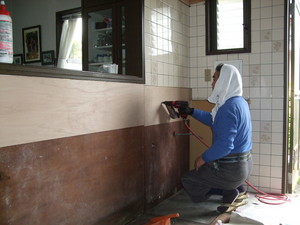 素早い動きでキッチンの下地をしています~