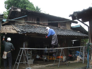 ちょっと手で触っただけで崩れていく瓦‥‥