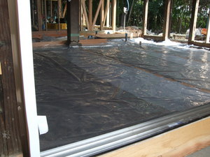 室内の土の上にシートを敷いてます。