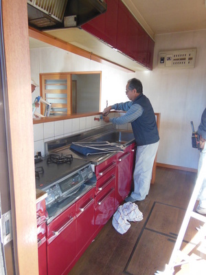 またまたアイコウさんが水を止めてキッチンを撤去する準備☆