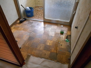 洗面室の床がふさがれ~