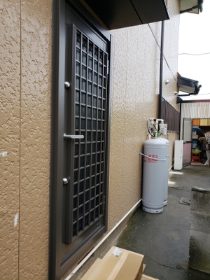 勝手口の扉も取り付けられ~