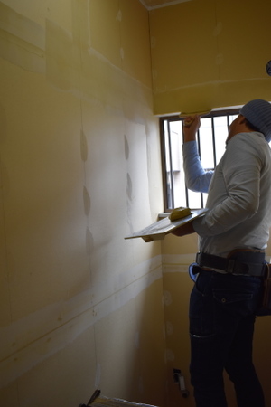 クロス下地作業のパテ塗りしてます