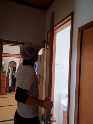 新しいドアを取り付けています