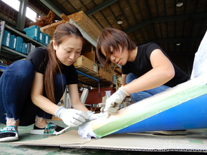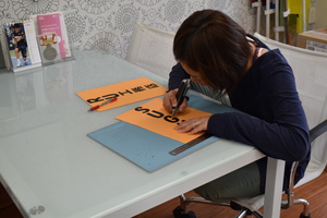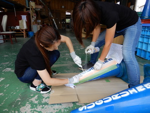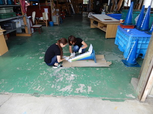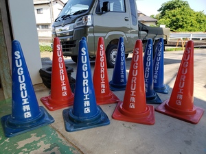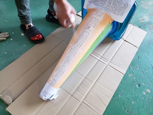 【2】カラーコーンに切り抜いた紙を貼り付け