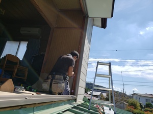 足利市 Y様邸 掃き出し窓修繕・物置屋根塗装①