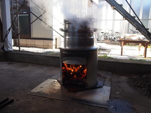 おっす!私は、美緒です。 新年あけましておめでとうございます。 今年もブログ見てくれたら嬉しいです☆ 2019年一発目のブログは、昨年末の 毎年恒例行事、もちつきです♪ \(゜ロ\)よし!もちつきに行ってみおっ! 火を焚いて、もち米を蒸かしてまーす。 いい匂いが漂ってきました。 蒸かしあがったサイ